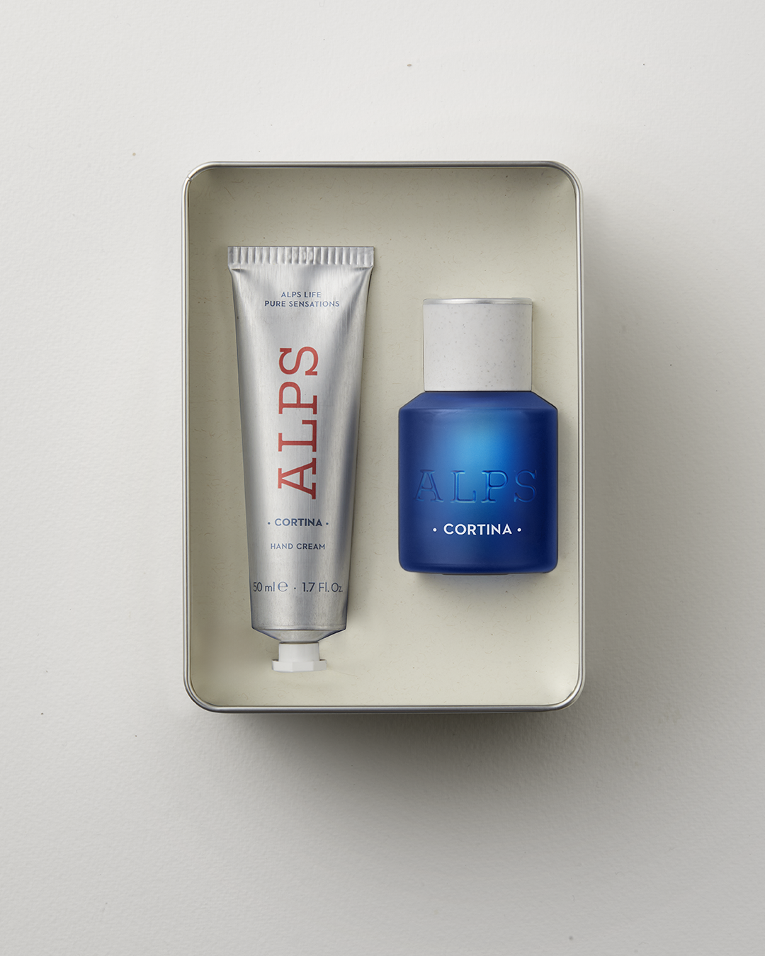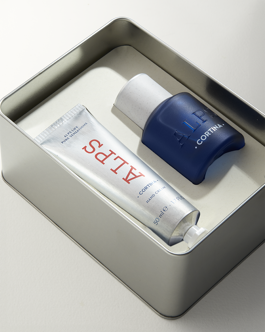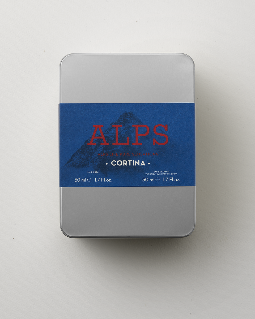 The Alps Cortina Metal Box includes an Eau de Parfum and a scented hand cream, both infused with the Alps Cortina fragrance—an olfactory expression inspired by the purity of alpine air and the authentic energy of the mountains. An ideal gift for those who draw daily inspiration from the mountains and seek a fresh, contemporary fragrance.